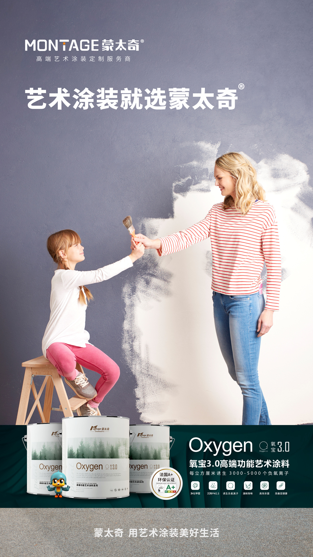 蒙太奇作為藝術(shù)涂裝研發(fā)、生產(chǎn)、設(shè)計、銷售和服務(wù)于一體的國家高新技術(shù)企業(yè),基于“高端藝術(shù)涂裝定制服務(wù)商”的品牌定位,蒙太奇擁有“原裝進口、原廠原罐”雙線產(chǎn)品體系,致力于為用戶提供高端住宅、商業(yè)環(huán)境與辦公空間等藝術(shù)涂裝一體化解決方案。