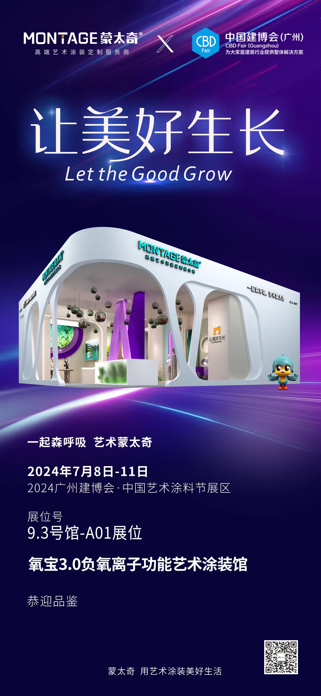 本次展會,蒙太奇將推出“讓美好生長”年度品牌策略,繼續以獨創性氧寶3.0負氧離子高端功能藝術涂料為主打,傳承“一起森呼吸,藝術蒙太奇“的展館設計理念,全新推出氧寶3.0流行色彩和臻石高端石材系列產品,呈現蒙太奇“好產品+好色彩+好工藝+好服務”高端藝術涂裝定制服務品牌價值。