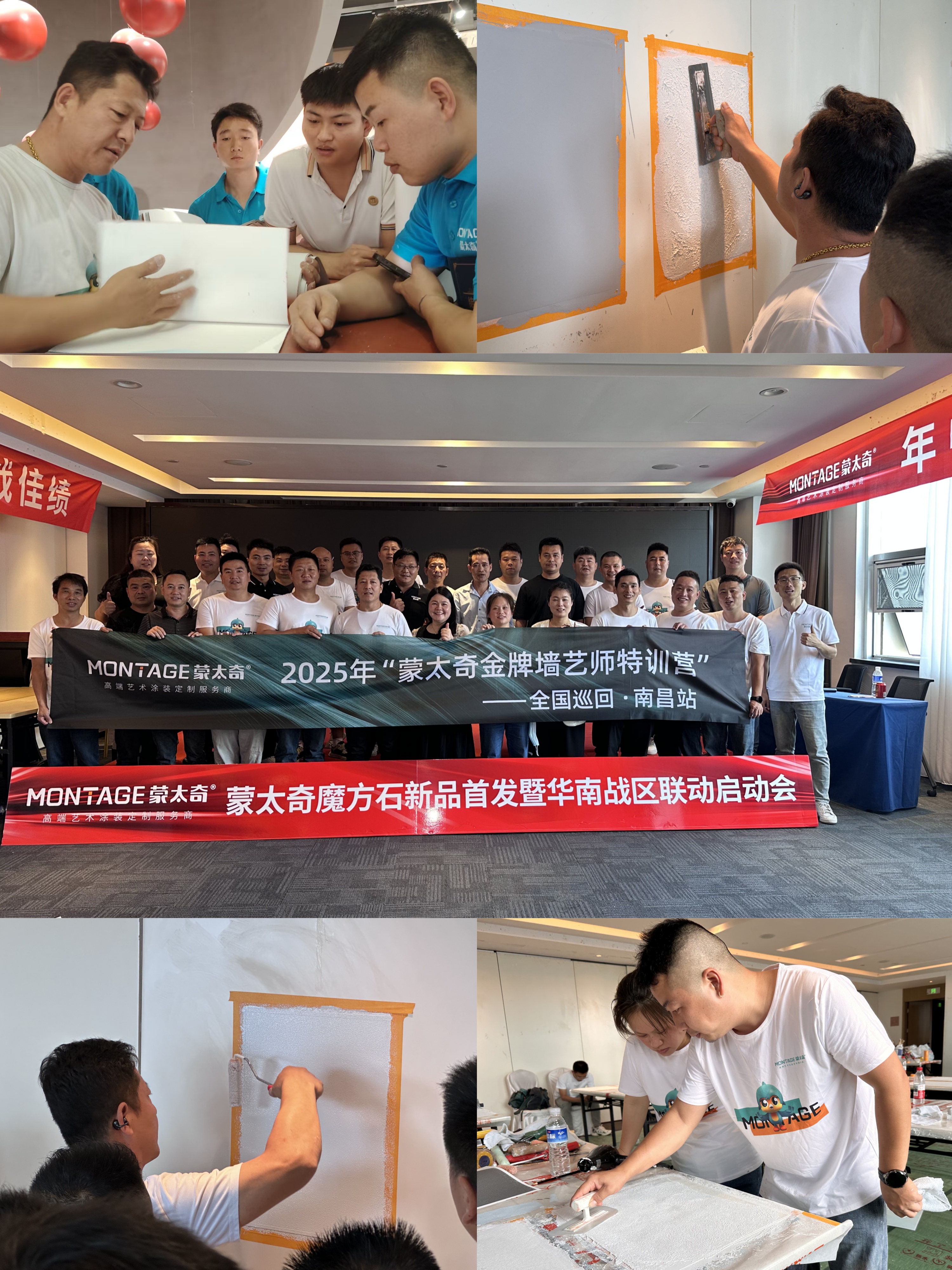 5月底至6月初,呂芳方女士攜蒙太奇2025年度戰略新品「魔方石」來到華南戰區。在廣東番禺和江西南昌兩地,分別啟動618華南聯動同城流量特訓營。她親自揭曉這款「免膩子工藝+ 72 面百變效果」的革命性產品,并同步推出「新品突圍 + 流量破局」雙主線戰術。