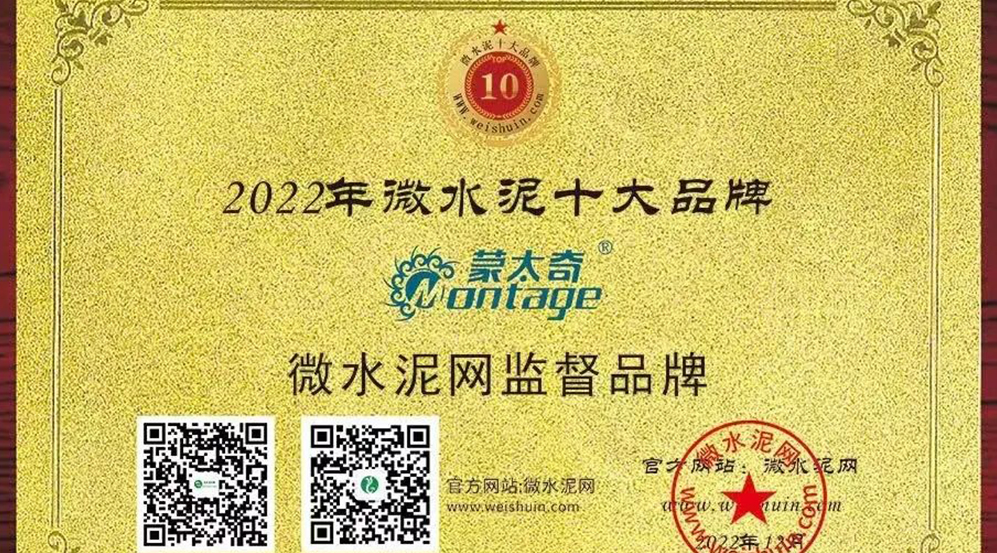 多年的專注與拼搏,全體蒙太奇人的共同努力,蒙太奇致力解決用戶家裝痛點,為千萬家用戶提供微水泥,本次榮獲微水泥十大品牌標志著公司的發(fā)展已經(jīng)踏上更高的臺階。