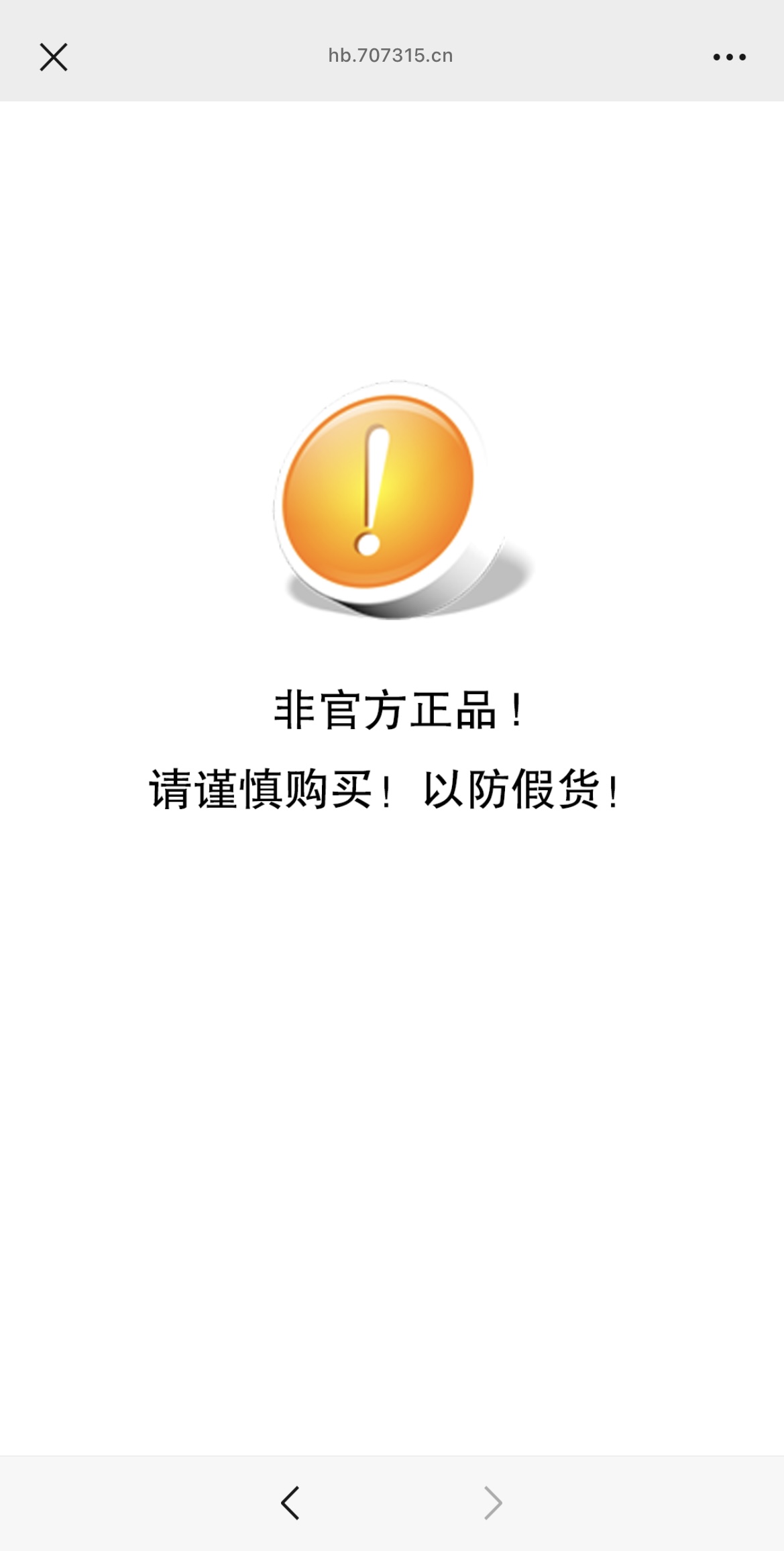 若結果顯示“是蒙太奇(廣東)新材料有限公司生產的正品”,請再核對查詢結果顯示的防偽碼與產品包裝上的防偽碼是否一致,若顯示以下信息,則該產品為官方正品。