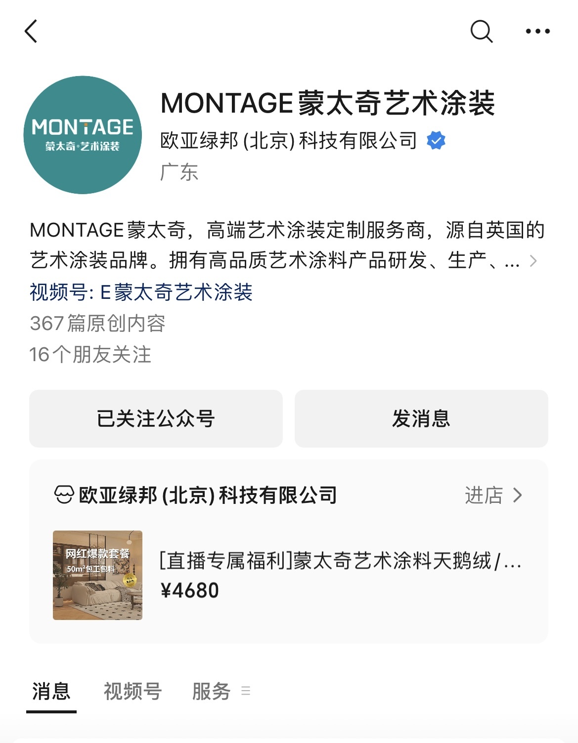 通過微信客戶端掃描產品包裝側封處的【官方微信公眾號二維碼】,對【MONTAGE蒙太奇藝術涂裝】官方公眾號的關注與綁定。此平臺為品牌唯一授權的防偽查詢入口。