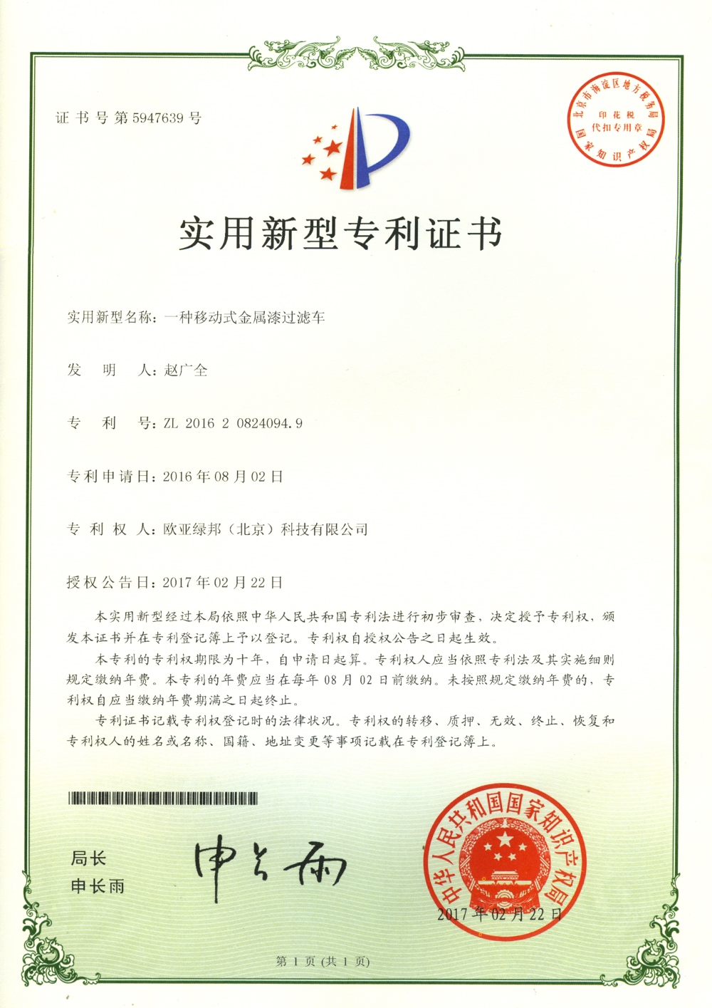 專利證書