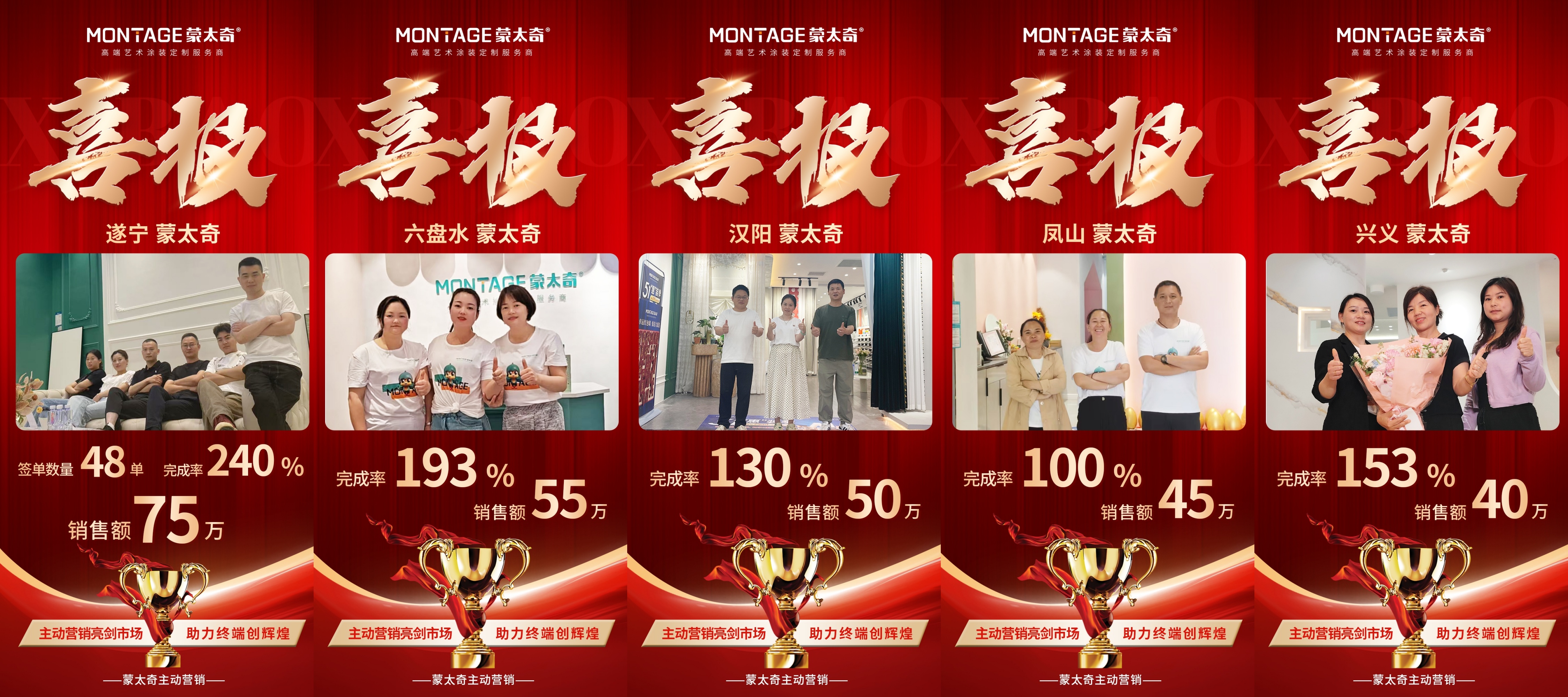 特別值得關注的是,在蒙太奇總部主動營銷團隊劉坤林老師、王潔老師的全程指導下,遂寧店以總簽單48單,目標完成率240%的亮眼戰績,成為本次聯動活動中最耀眼的標桿門店。遂寧店作為蒙太奇西南區域的優秀經銷商,遂寧專賣店負責人鄧飛先生與蒙太奇攜手走過11年征程,憑借過硬的施工工藝,獨有的自研工藝,成功征服當地消費者。此次活動的圓滿收官,不僅幫助終端門店實現突破性增長,為其他終端門店提供可復制的實戰范本。